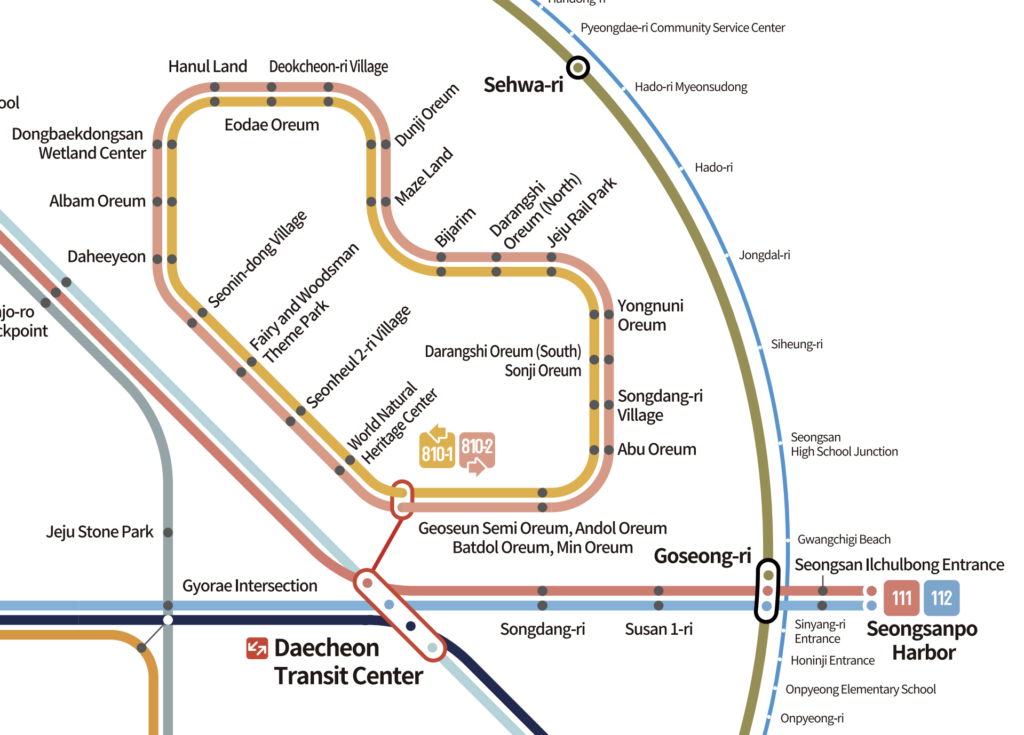• 🟡810 Bus (East Jeju attractions) – Nature spots and UNESCO sites