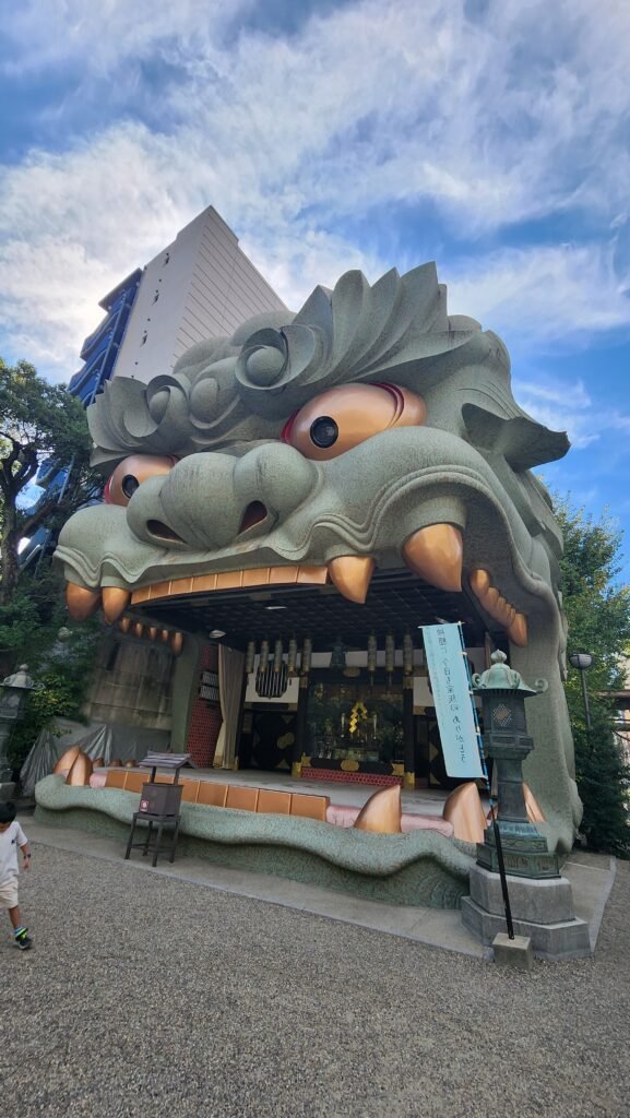 Not far from America Mura, you’ll find Namba Yasaka Shrine, best known for its massive lion head stage (Shishiden). It’s honestly one of the most unique shrines I’ve ever seen, and hard to miss.